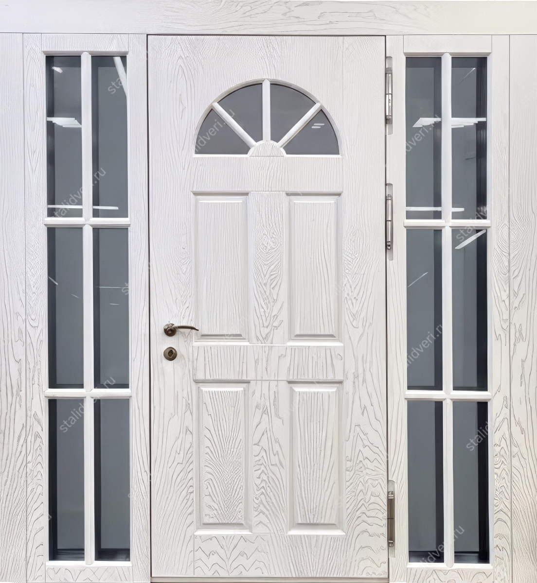 Парадная входная группа с терморазрывом, остеклением и панелями МДФ белого цвета со шпоном Арт-336